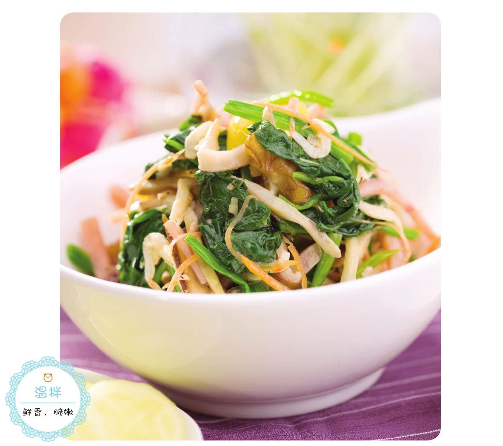 水发腐竹段200克,菠菜段150克,红甜椒丝、水发木耳丝各30克。