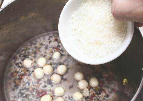 3 汤煲内加入适量清水煮沸,放入猪排骨、黑豆、红枣、生姜,旺火烧沸后转小火煲约2小时,再加入精盐调好口味即可。