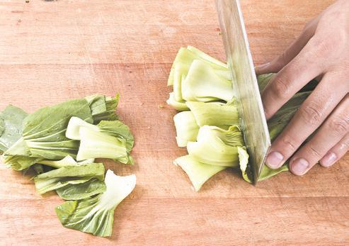 1 草菇洗净,放入沸水中焯一下,捞出沥水,切成小片。