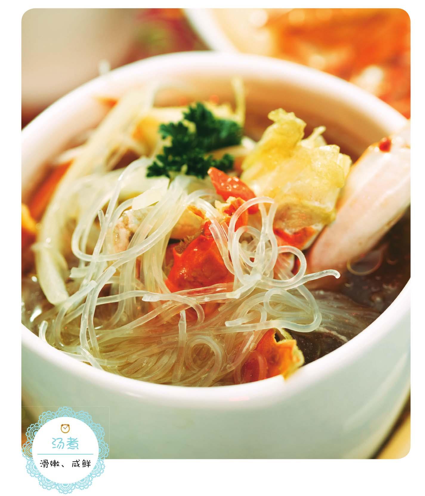 3 砂锅加入底油烧热,先爆香洋葱丝、姜丝、红椒丝,再放入粉丝、飞蟹略炒,然后加入清汤、黑胡椒汁、蚝油、鲜露、鸡汁、料酒略炖,上桌即可。