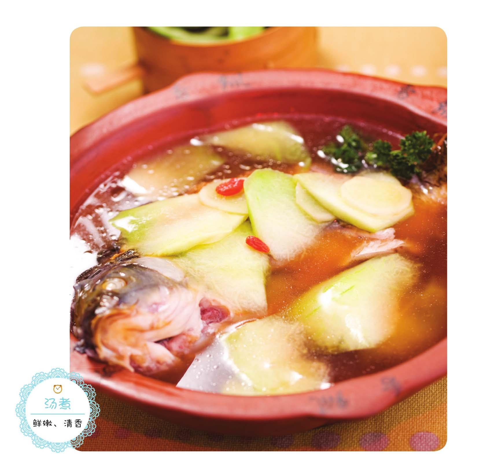 1 将冬瓜去皮、去瓤,洗净,切成片;鲤鱼去鳞、去鳃、去鳍,剖腹去内脏,洗净。