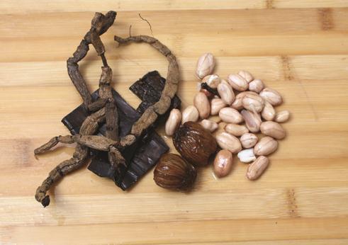 猪蹄750克,花生100克,巴戟天、杜仲各30克,蜜枣15克。