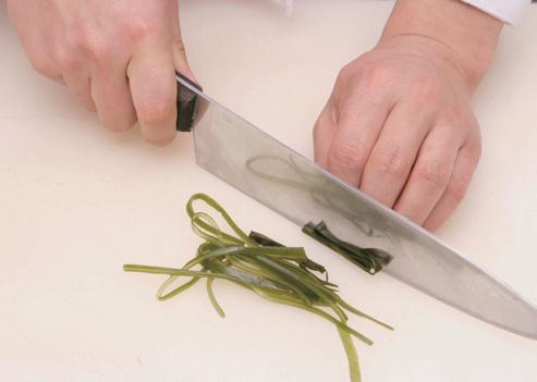 1 将水发海带漂洗干净,切成细丝,放入沸水锅中焯烫一下,捞出沥干。