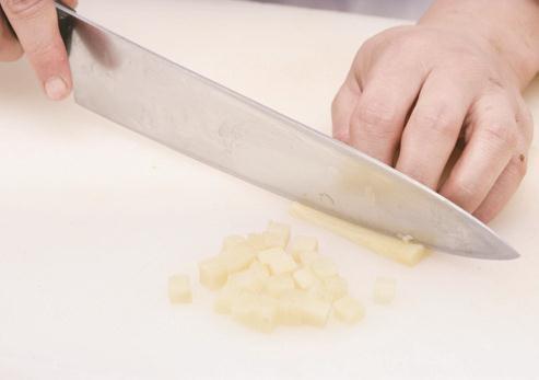 2 菠萝去皮,取肉,切成小粒,用淡盐水浸泡一下,捞出沥干。