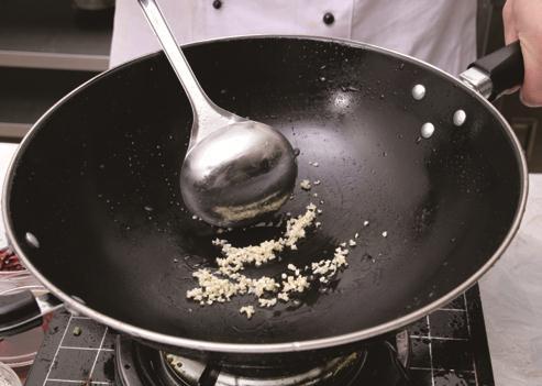 2 锅中加油烧至六成热,下入葱段、姜片爆香,烹入料酒,放入乌鸡块,用旺火煸炒片刻。