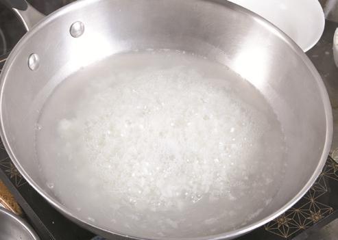 2 大米淘洗干净,浸泡30分钟,捞出沥干水分,下入饭锅中,加入适量清水,先用大火烧沸,再转小火慢煮30分钟。