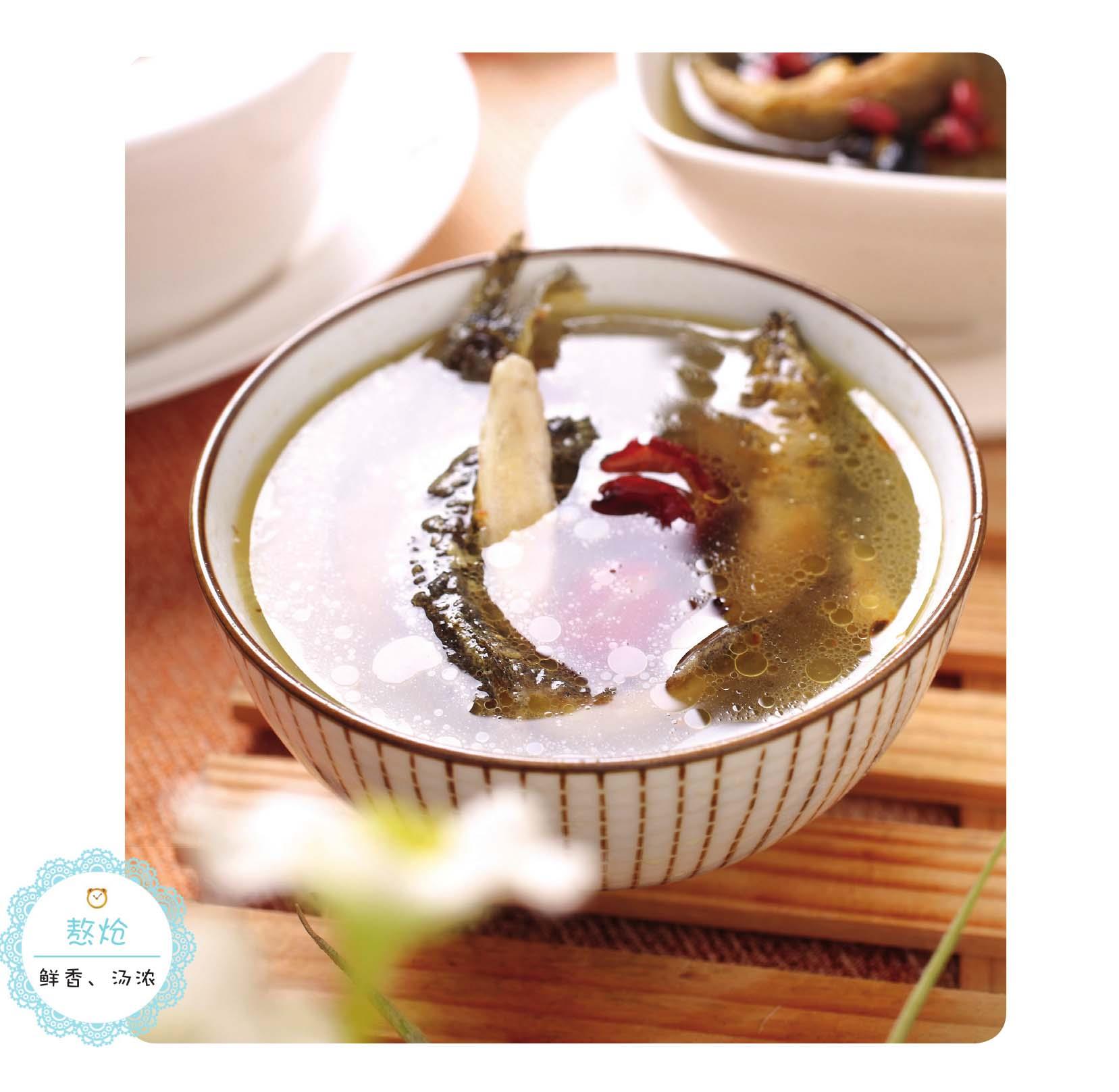 1 将咸酸菜洗净,切成片;鸭子洗净、沥水,剁成大块,放入大盘中,用微波保鲜膜封好,留一小孔出气,入炉用高火打3分钟,取出,倒去血水。