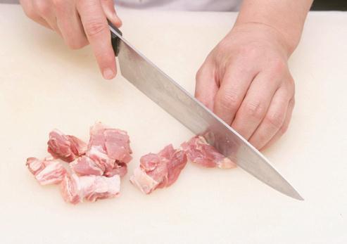 1 猪肉洗净、切丁,加入少许酱油、精盐、蛋液、淀粉、清水抓匀;红干椒去蒂、洗净,切成小段;取一小碗,加入少许清水、酱油、精盐、白糖、淀粉,调匀成味汁。