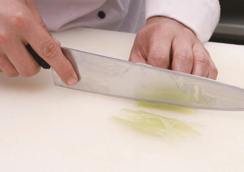 3 将香葱洗净,切成3厘米长的段;红辣椒洗净去籽,切成细丝。