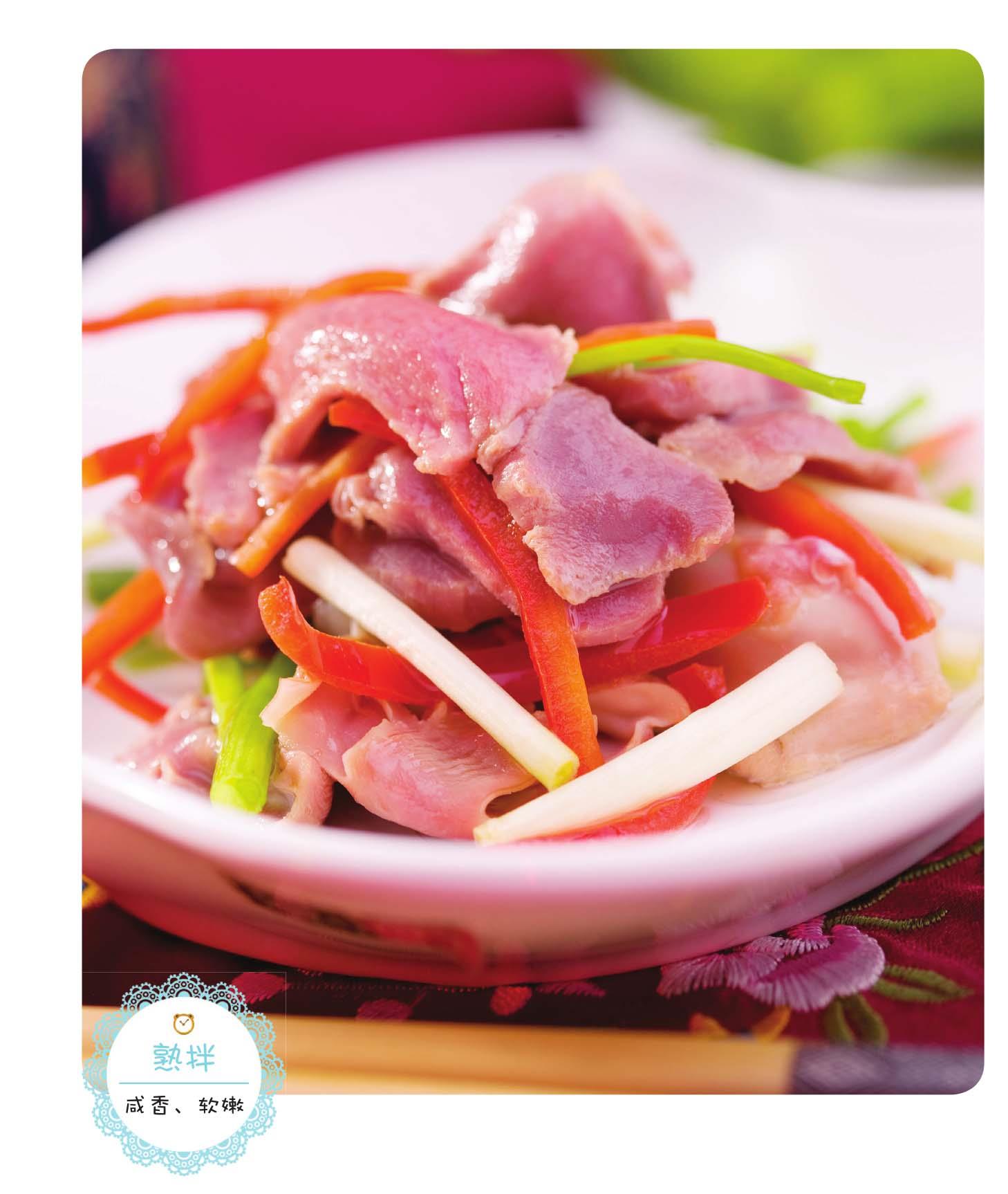1 鸡肉入沸水中略焯,去除血污,放入加有姜、葱、料酒、香料的锅中,用中火焖熟,离火,在原汤中浸泡30分钟,然片成厚薄均6毫米的片。