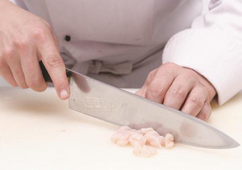 2 鸡肉洗净,切成小丁,加入精盐、料酒、淀粉拌匀上浆,再下入五成热油中滑至八分熟,捞出沥油。