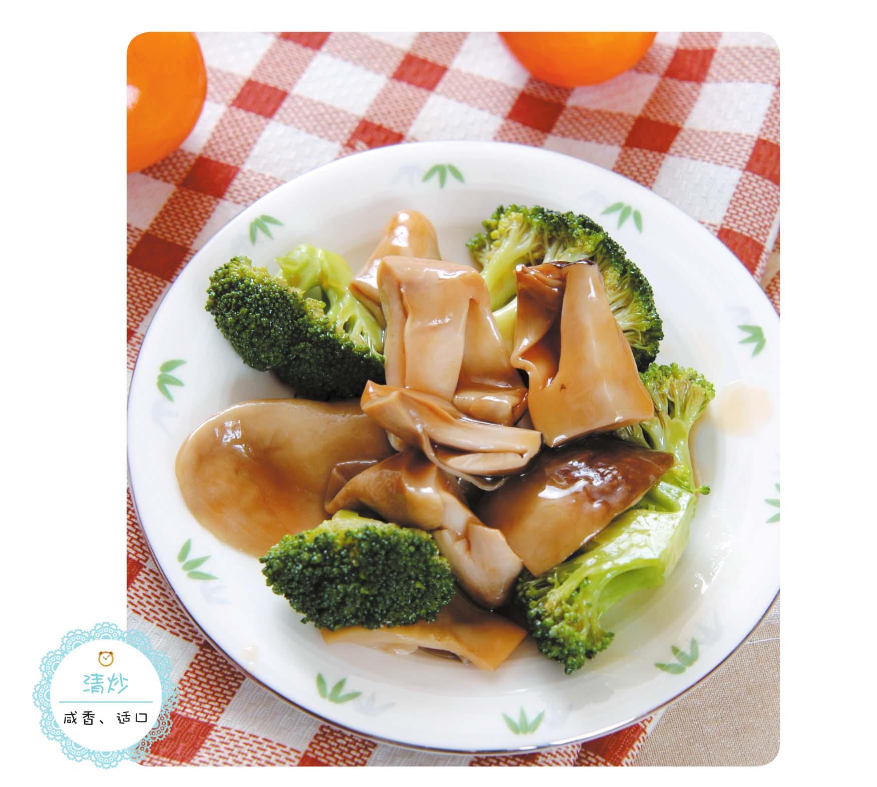 3 炒锅置火上,加入香油烧热,先下入花椒炸香(捞出不用),再放入葱丝、姜丝、蚝油炒匀,然后加入冬菇、冬笋、金针菇略炒,再烹入料酒,添入清汤,加入精盐炒至入味,即可出锅装盘。