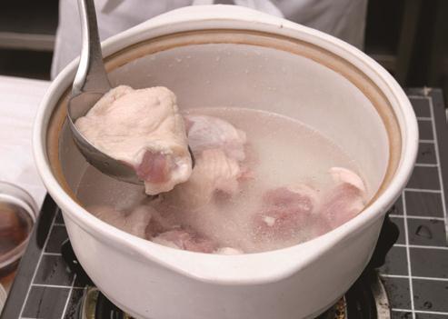 2 乌鸡洗净,斩成大块;瘦肉洗净,切成块。