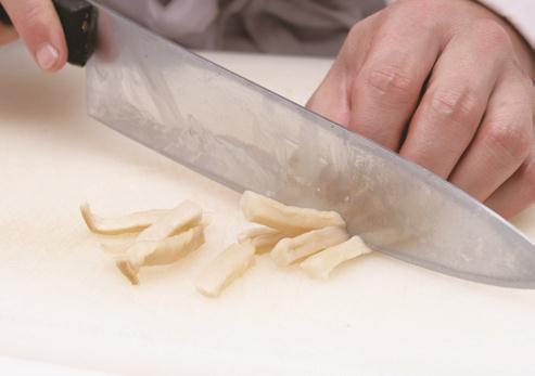 1 将水发冬菇去蒂、洗净,挤干水分,切成细丝。