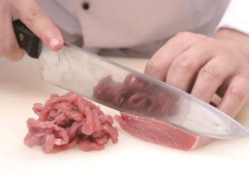 1 瘦牛肉洗净,切成丝;新鲜蘑菇洗净,去根,也切成丝。
