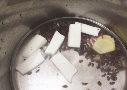 2 将红米放入锅内,加入适量清水烧开,再改用慢火煮约30分钟。