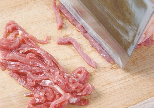1 瘦牛肉洗净,切成丝;新鲜蘑菇洗净,去根,也切成丝。