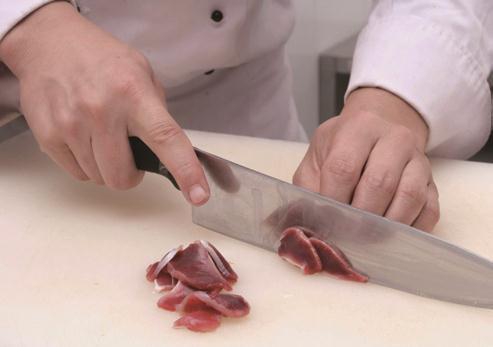 1 鹅肫去除污物,反复冲洗干净,放入沸水锅中焯一下,然后投入卤水锅中卤至软熟,捞出切成0.3厘米厚的片。