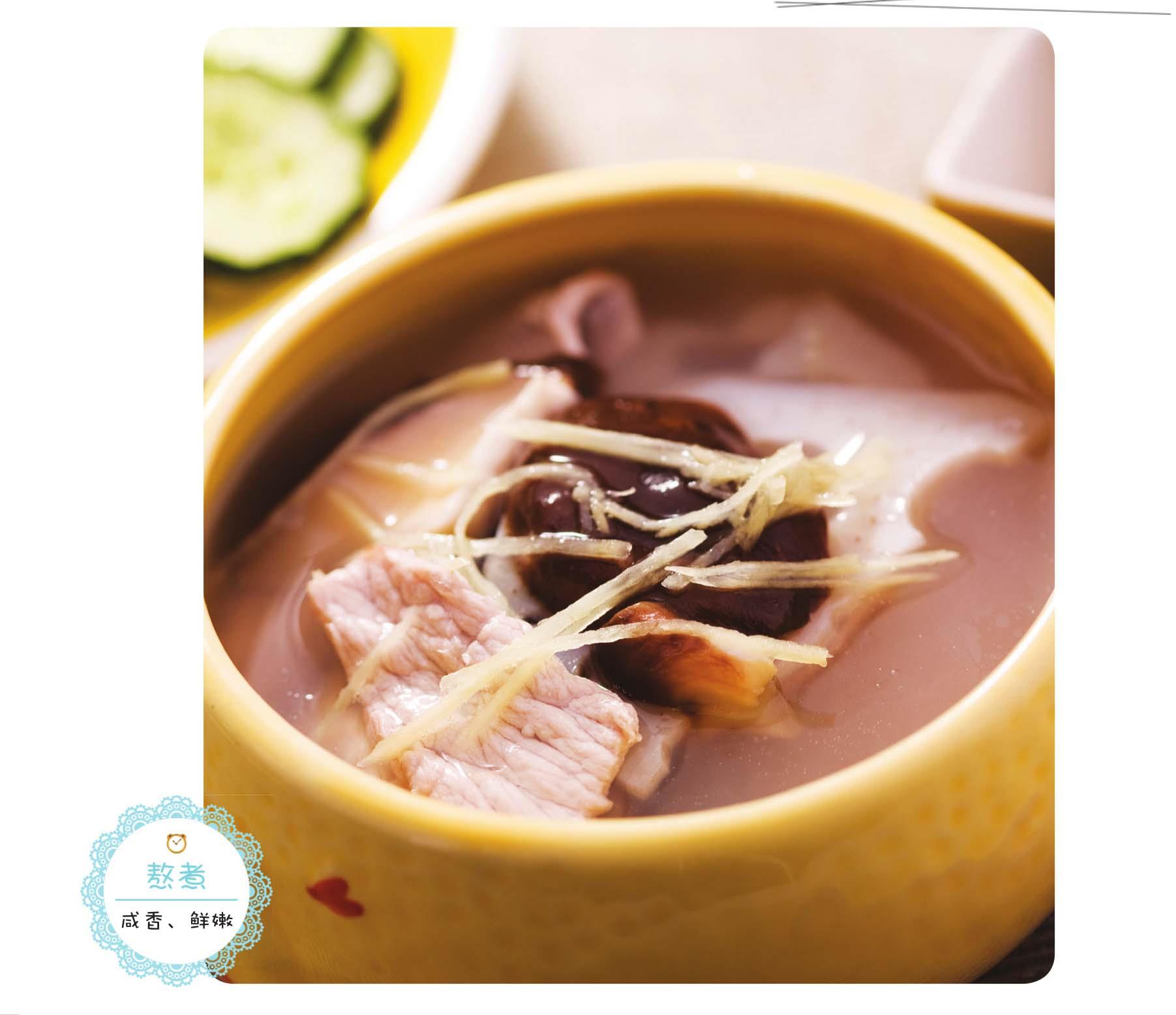 3 将汤煲内加入适量清水烧沸,再放入所有材料,用大火煲约1.5小时至熟,然后加入精盐调味即可。