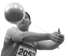 和其他投掷项目一样,积极换腿,降低重心保持身体平衡。