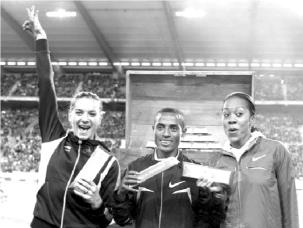 2009年分享百万黄金的3名运动员(美国女子400米名将理查德兹、俄罗斯撑杆跳女皇伊辛巴耶娃和埃塞俄比亚中长跑名将贝克勒)