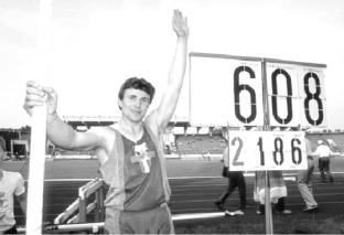 在撑竿跳高项目中,6米一度被看作是不可逾越的高度,然而布勃卡却在1985年就首次突破6米大关,1994年7月,他第17次也是最后一次打破室外世界纪录并将世界纪录定格在了6.14米,至今无人能破。