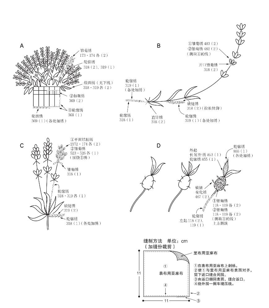 各20cm×20cm,里布用亚麻布各20cm×20cm。