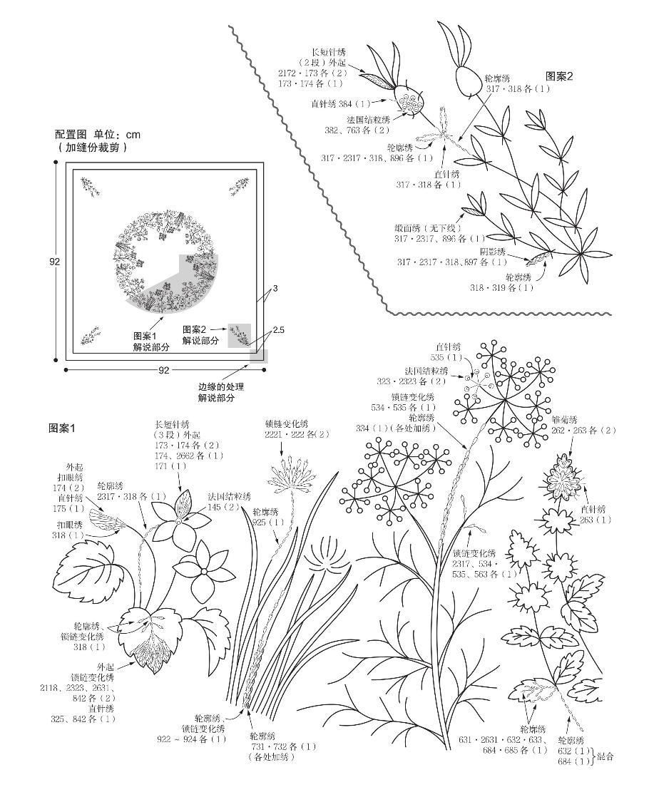 ※因版面有限,图案1只画出了一部分。请参照配置图重复图案1完成全图。图案2则请参照配置图配置在四个角落。