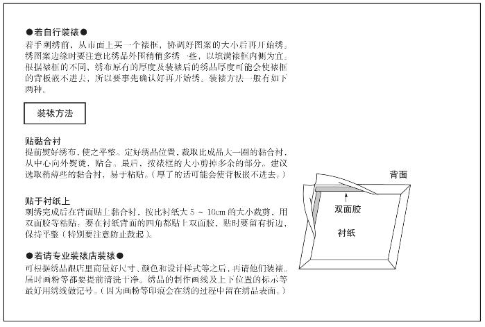 【其他】市售画框(内部尺寸:17cm×12cm,衬纸内部尺寸:14.5cm×9cm)。※绣完后在里侧烫贴黏合衬,然后放入画框内。(装裱方法请参照第47页)