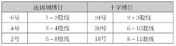 绣针的特点是针眼细长,其长短粗细各式各样,本书选用的是平时常用的针,也有其他种类的针,请按照绣布的材质和绣线的根数选取相应的针。若选取布纹来绣,则宜采用圆形针尖的十字绣针等。