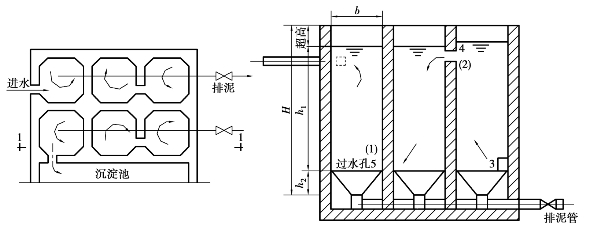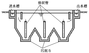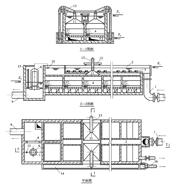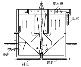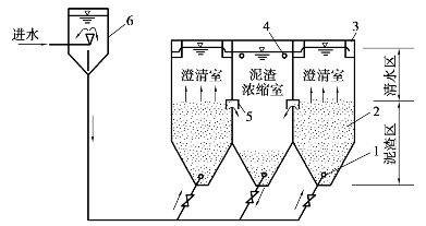 一次沉淀(澄清)处理构筑物多采用水旋絮凝混凝澄清池一类的新型处理构筑物,这类构筑物在砂峰时,为减少出水浊度,除投加絮凝剂外,同时也投加混凝剂,河水较清时则仅投加混凝剂。由于这类池型采用絮凝混凝沉淀和沉淀泥渣的二次分离技术,故占地小、效率高。