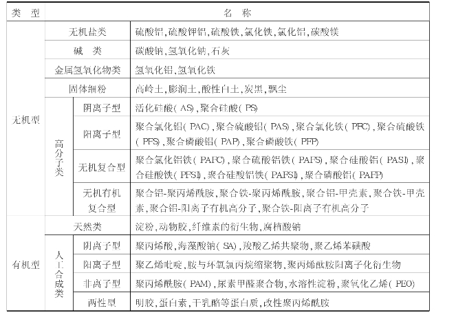 混凝剂种类很多,按化学成分可分为无机和有机两大类,如表2.1所示。