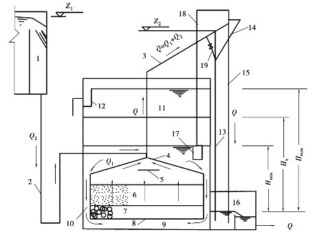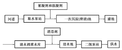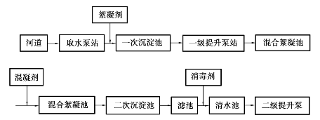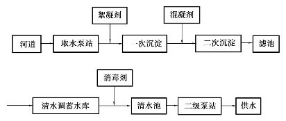 与一般水处理工艺流程不同,高浊度水处理工艺受河道泥砂影响大,一般设有调蓄水库。在沉淀过程中,往往采用二次沉淀。