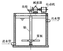 在混合阶段,异向絮凝占主导地位。药剂水解、聚合及颗粒脱稳进程很快,故要求混合快速剧烈,通常搅拌时间为10~30s,一般G为500~1000s-1。在絮凝阶段,同向絮凝占主导地位。絮凝效果不仅与G有关,还与絮凝时间T有关。在此阶段,既要创造足够的碰撞机会和良好的吸附条件,让絮体有足够的成长机会,又要防止生成的小絮体被打碎,因此,搅拌强度要逐渐减小,反应时间相对加长,一般在15~30min,平均G为20~70s-1,平均GT为1×104~1×105。