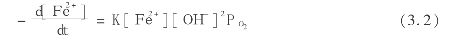 经研究表明,二价铁的氧化速率与水中二价铁、氧、氢氧根离子的摩尔浓度有关,可表示为: