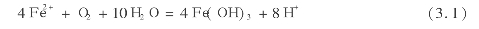 含铁地下水经曝气充氧后,水中的二价铁离子发生如下反应: