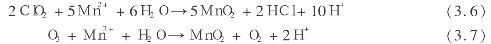 和化学氧化除铁相似,氯、二氧化氯、臭氧、高锰酸钾强氧化剂能把二价锰氧化成四价锰沉淀析出,具有除锰作用,容易发生化学反应的反应式为: