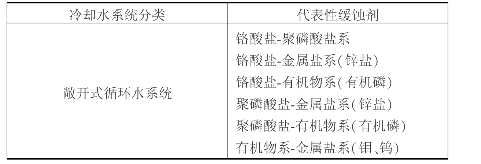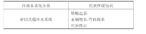 表3.9 应用于各种冷却水系统的代表性缓蚀剂