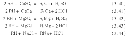树脂RH经交换后变成R2 Ca、R2 Mg、RNa,树脂的再生剂为硫酸或盐酸。