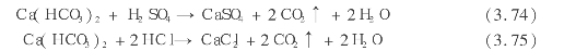 CaSO4和CaCl2的溶解度远大于CaCO3,故加酸处理有助防垢。经加酸处理后应满足下列条件: