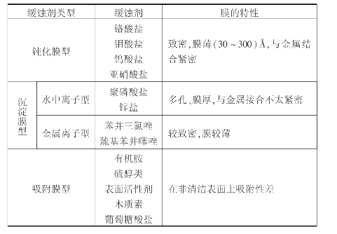 表3.8 缓蚀剂的种类及其性质