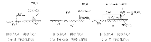 图3.31 铁的电化学腐蚀过程
