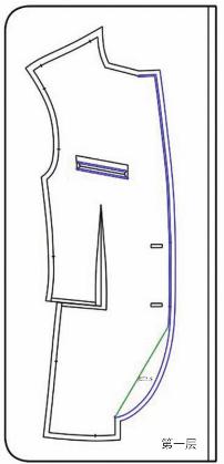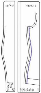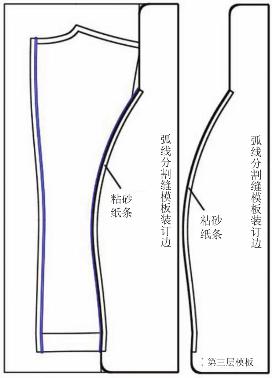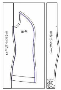 侧缝缝制工艺模板设计方法与公主线模板设计方法相同,第一层模板与公主线第一层模板共用,只需设计第二、三层模板。
