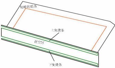 在第一层模板上,保留开槽通道,其余线条全部删除。在槽宽线两边设计1 cm宽的砂纸条、海绵条、安全位等位置。如图6.75所示。