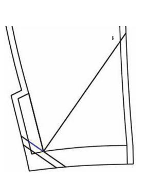 复制第一层模板,以槽宽最外边的一条槽宽线上下两端点分别向上下做垂线,与模板边框相交,以此线为分割线得到模板边框,修圆角。如图6.76、图6.77所示。