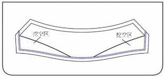 第三层模板设计时,在第一层模板的基础上,将槽宽线以内的袋盖部分挖空(绿色线部分)。如图6.33所示。