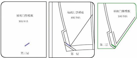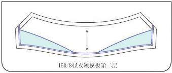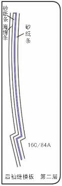 弧形分割线缝制工艺模板是一个3层模板,第一层模板与前面背中缝模板的第一层模板共用,现在只需要设计第二、三层模板。