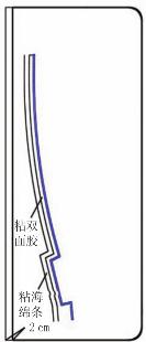 第二层模板摆放小袖片,由于小袖片后袖缝与大袖片后袖缝弧线形状不一样,所以将第二层模板设计双面胶和海绵条位置来固定小袖片的后袖缝。设计方法与前衣片公主线模板相同。复制第一层模板,装订边偏进2 cm为第二层模板的装订边,设计双面胶与海绵条粘贴位置。如图6.58所示。