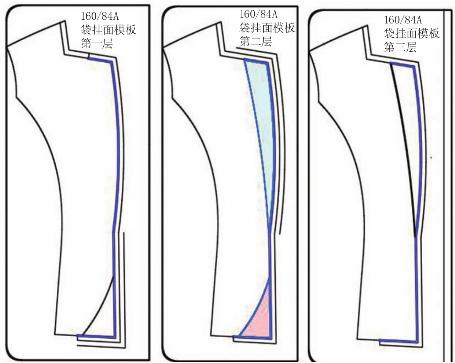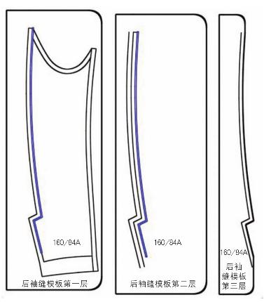 综上所述真袖衩后袖缝三层模板如图6.78所示。