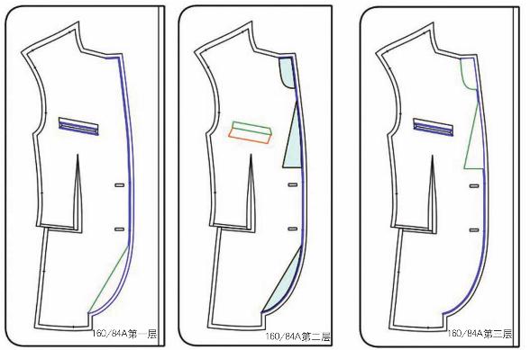 对条对格模板设计(在需要对条对格的模板上画出条格位置即可,背中、侧缝、衣片的分割缝、前后袖缝等)。